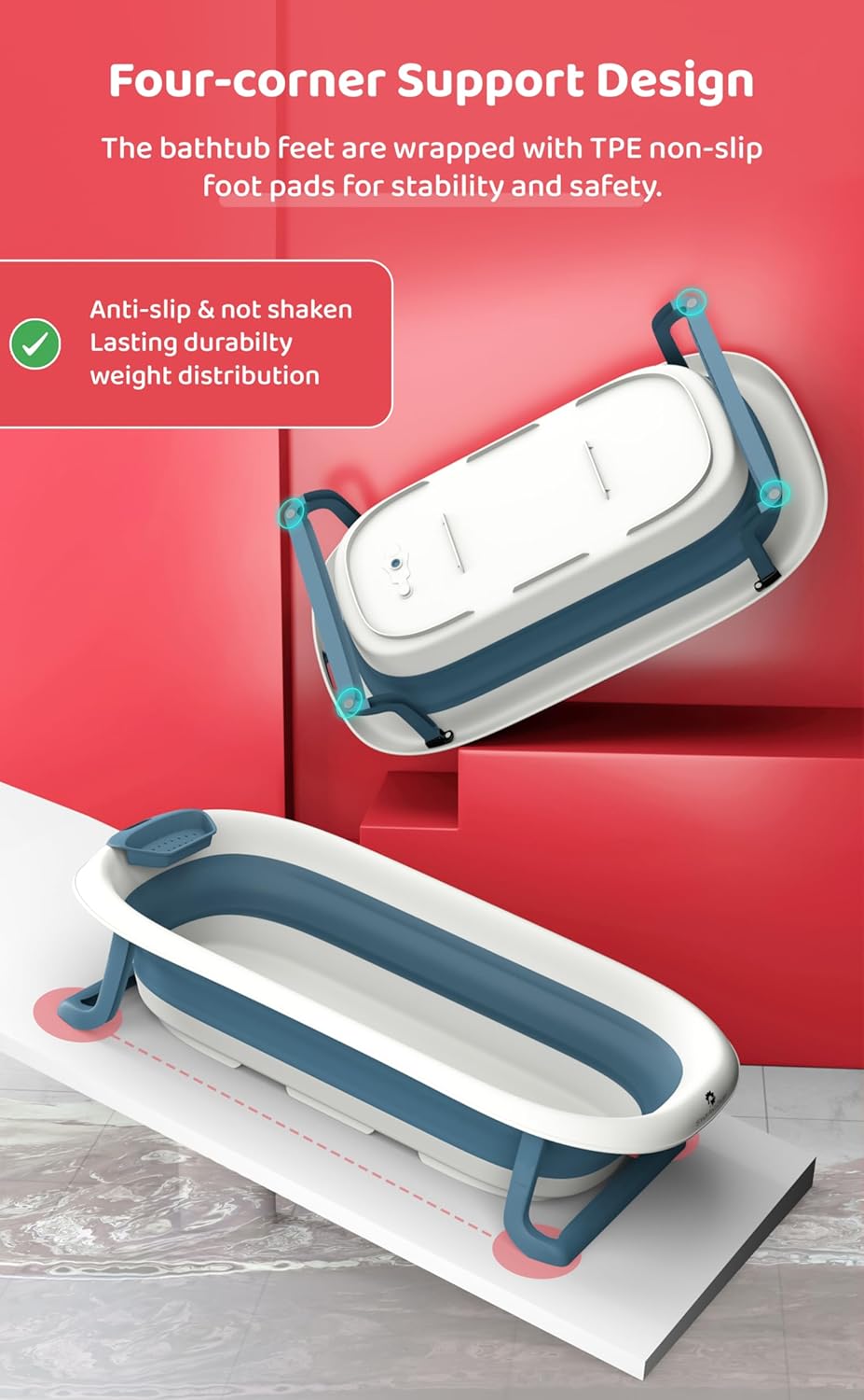 StarAndDaisy Bath Tub for Baby 0-3 Years/Foldable Bathtub for Kids with Space Saving, Newborn Baby Folding Bathing Tub Girls & Boys with Soap Tray, Easy to Store (BT-Blue)